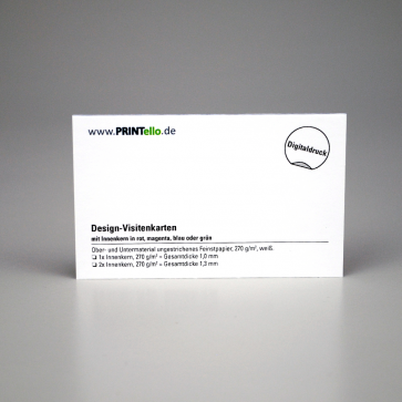 | Colors Information | Der Druck erfolgt im Digitaldruck mit Euroskala (CMYK). Bei größeren Farb- bzw. Rasterflächen (z.B. eine Farbfläche im Hintergrund) wird durch die Tonerschicht Glanz und Haptik der Papieroberfläche beeinflusst.<br> |
